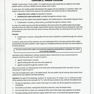 Bring your students;#39; writing skills to the next level using lessons based on the “generative” principle of instruction. Each of the unit;#39;s lessons have students create the structures themselves as opposed to simply recognizing and identifying.Unit Covers Six Comma Rules: Introductory Medial Terminal Items in a series Two adjectives Compound sentencesIncludes 22 lessons, two tests, and answer key.Middle school, high school. Reproducible. 32 pages.Unit Download: PDF. Adobe Reader required to view PDF.Print Unit: Loose-leaf paper. 8 x 11 inches. Plastic storage envelope.