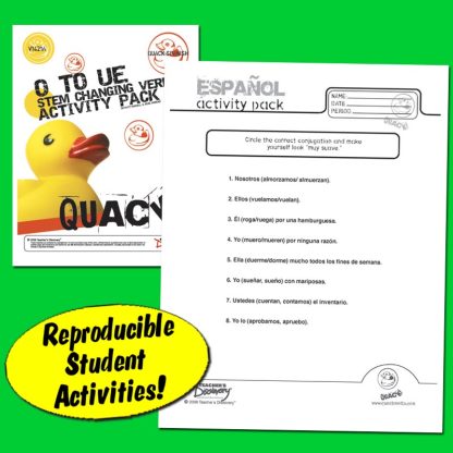 Quack! O to UE Stem-Changing Verbs Spanish Video – Quack! O to UE Stem-Changing Verbs Spanish Video Activity Packet Download