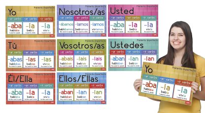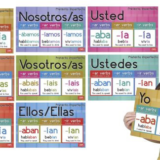 This stylish bulletin board set is excellent for mastering Spanish Pret;eacute;rito imperfecto dash;ar/em, -er/em and dash;ir/em verbs. Remind your students of the proper verb endings. Available as a set of eight. 11 x 17 inches. Cardstock.