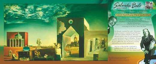 span style=”font-size: medium; color: #ff0000;”$479 per week/spanThe sideways glance, the moustache, the unforgettable presence of the Spanish wonder Salvador Dal;iacute;. Endlessly fascinate your students with the most imaginative paintings the world has known and let them decide–showman or genius? br /br / Brightly colored images on lightweight satin fabric are easy to install (hardware included) on any drop ceiling. Set includes: “Suburbs of a Paranoiac Critical Town” (7 feet by 17 feet), “The Persistence of Memory” (4 feet by 4 feet), and “Galatea of the Spheres” (4 feet by 8 feet).spanAll prices include rental, shipping, handling and return shipping./spanbr /span1 week $479/spanbr /span2 weeks $799 /spanbr /span3 weeks $1,199/spanbr /span4 weeks $1,499/spanbr /span7 weeks $1,999 /spanbr /span/spanbr /span>eed a longer rental? Call for pricing at (248)276-4913./spanspanspanThis exhibit includes:/br / ;bull;3 full color panels on satin fabric: 7 x 17 feet, 8 x 4 feet and 4 x 4 feetbr / ;bull;Hardware to easily install from any drop ceilingbr / ;bull;Printable signs, exhibit information, and easy to use press kitbr / ;bull;Hanging and re-packing instructionsbr / ;bull;Shipping BOTH ways/span/spanbr /Reserve this exhibit online by visiting a “http://www.travelingexhibits.org/exhibits/salvador-dali-traveling-exhibit-p975/” target=”_blank”travelingexhibits.org/a.