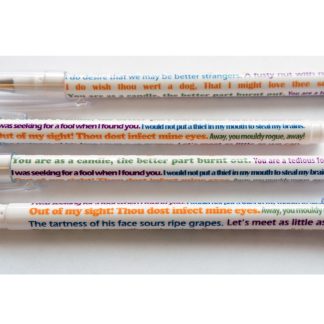 What better to inspire them than writings from the ;ldquo;Bard;rdquo; himself? These pens will rouse your students to create insults of their own.Medium point, blue ink. 12 pens per pack.