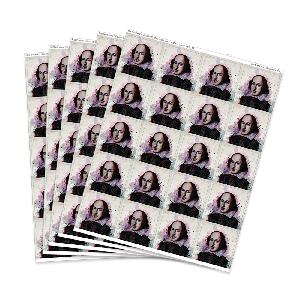 One hundred Shakespeare stickers–great for incentives or for yourself! Five sheets of 20 full-color stickers in a cool watercolor design. Each square sticker measures 1.25 x 1.25 inches. Copyright 2019.