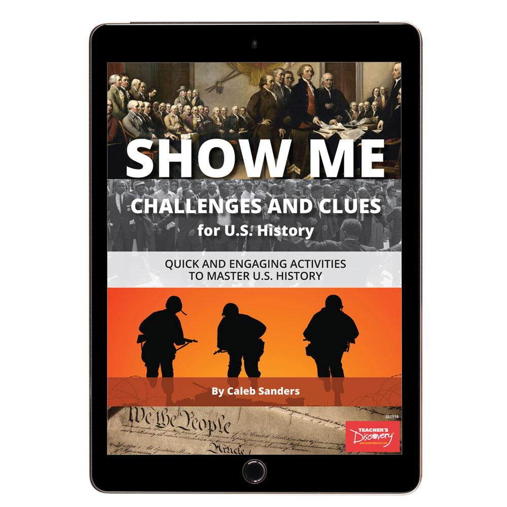 Create a skit about Manifest Destiny. Write a poem about the Oregon Trail./emHook students with multiple learning styles in a series of cooperative learning activities that spanall major eras of U.S. history and can be woven seamlessly into your regular unit or make for an exciting game format!Features: Speed, Time, and Creative Challenges Post-Activity Discussion Questions and Student-Created Examples Reproducible Creative Challenges Template Alignment with Common Core, C3, and NCSS Standardsspan style=”color:#FF0000;”span style=”font-family: sans-serif, Arial, Verdana, “Trebuchet MS”; font-size: 13px; background-color: rgb(255, 255, 255);”Download the FREE sample chapter located in “Additional Info.”/span/spanCopyright 2018. Middle school, high school. 103 pages.Book Download: PDF. Adobe Reader required to view PDF. PDF pages include color images.Print Book: Spiral-bound. 8.5 x 11 inches. Black and white pages.img alt=”” src=”//aedownload.net/teachersdiscovery/images/Author_Caleb_Sanders.jpg” style=”float: left; border-width: 0px; border-style: solid; margin: 0px 6px; height: 150px; padding-right: 10px;” /About the AuthorCaleb Sanders has spent his time in education as a Social Studies teacher at the high school level for the last 16 years. He was recognized as one of the Arch Coal Teacher Achievement Award recipients in the state of Wyoming in 2015, and has been recognized as Teacher of the Year by his district. Caleb is the author of the Teacher’s Discovery Easy Debates /emseries and the Show Me Challenges and Clues/em series, as well as Creating Easy Mock Trials for Your Social Studies Classroom/em. He has created a steady stream of mock trials, debates, simulations, and other activities that he frequently uses in his classroom to engage students in lively learning. Caleb is married to Lexi Sanders, and they have three children. He loves astronomy, board games, puzzles, and collecting children’s books. His identical twin brother is his department chair at the same high school, which results in plenty of fun confusion!