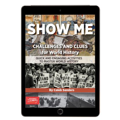 Pretend that Joan of Arc no longer wants to be part of her historical era. Create a resignation letter that she would write./emHave a blast with the past with hundreds of activities that span major eras of world history! Weave activities seamlessly into your lessons for partner and group work or as part of a game. Students of all learning styles work together to approach world history in a whole new way! Speed, Time, and Creative Challenges Post-Activity Discussion Questions Reproducible Creative Challenges Template and Student-Created Examples Alignment with Common Core, C3, and NCSS Standardsspan style=”color:#FF0000;”Download the free sample chapter located in “Additional Info.”/spanCopyright 2019. Reproducible. Middle school, high school. 109 pages.Download Book: PDF. Adobe Reader required to view PDF.Print Book: Spiral-bound, 8.5 x 11 inches.img alt=”” src=”//aedownload.net/teachersdiscovery/images/Author_Caleb_Sanders.jpg” style=”float: left; border-width: 0px; border-style: solid; margin: 0px 6px; height: 150px; padding-right: 10px;” /About the AuthorCaleb Sanders has spent his time in education as a Social Studies teacher at the high school level for the last 16 years. He was recognized as one of the Arch Coal Teacher Achievement Award recipients in the state of Wyoming in 2015, and has been recognized as Teacher of the Year by his district. Caleb is the author of the Teacher’s Discovery Easy Debates /emseries and the Show Me Challenges and Clues/em series, as well as Creating Easy Mock Trials for Your Social Studies Classroom/em. He has created a steady stream of mock trials, debates, simulations, and other activities that he frequently uses in his classroom to engage students in lively learning. Caleb is married to Lexi Sanders, and they have three children. He loves astronomy, board games, puzzles, and collecting children’s books. His identical twin brother is his department chair at the same high school, which results in plenty of fun confusion!