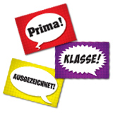 Let your students know they’ve done great work with these eye-popping German stickers! Three sheets of 20 assorted full color stickers, for a total of 60. Each sticker measures over one inch across.