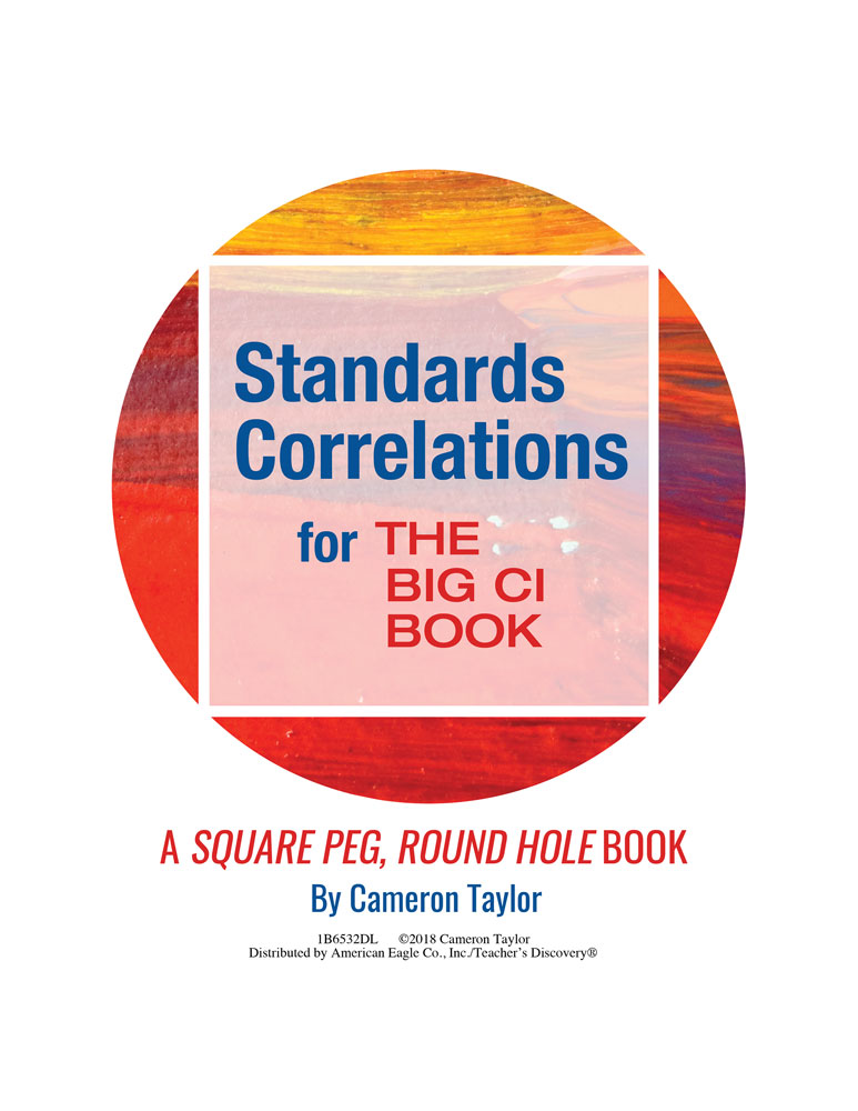 With thoughtful analysis of classroom practices and a thorough knowledge of the standards, Cameron Taylor fits the square peg of CI strategies into the round hole of World-Readiness and Common Core Standards. The appropriate standards, as well as enduring understandings and essential questions, learning objectives, assessment evidence, and Can-Do statements, are listed for every activity in The Big CI Book (1B4886) to aid you in your planning and instruction. English. PDF download. 8.5 x 11 inches. 216 pages.