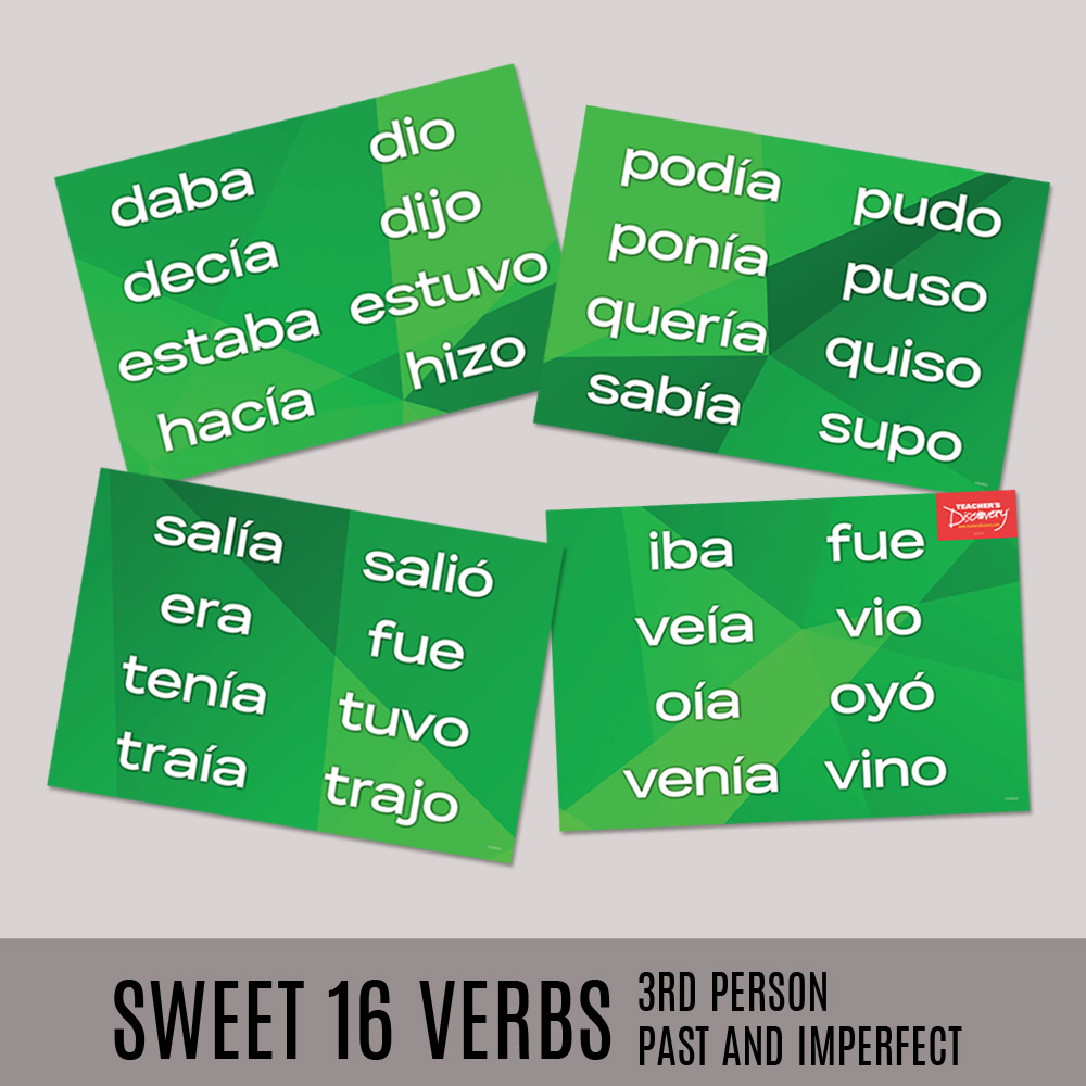 To quickly build fluency in your students, lay down a foundation of the most often used words in the Spanish language! Click on “Additional Info” for an essay by experienced TPRS/CI teacher Mike Peto on how and why he teaches this set of 16 high-frequency Spanish verbs, and ways to put this poster set to work in your classroom.Set of 4 posters of the verbs conjugated in their 3rd person past and imperfect singular forms. 13 x 19 inches each. Cardstock.img alt=”” src=”//aedownload.net/teachersdiscovery/images/Author_Mike_Peto.jpg” style=”float: left; border-width: 0px; border-style: solid; margin: 0px 6px; height: 100px;” /About the AuthorMike Peto/ writes the language blog My Generation of Polyglots. He is known for teaching with CI, pleasure reading, HLs, and telenovelas.