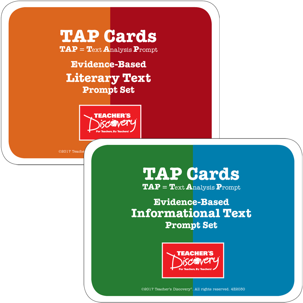 Students can no longer read passively once they are assigned evidence-based Text Analysis Prompt Cards, or TAP Cards/em for short. The classroom application has countless possibilities because these prompts require close reading, analysis, and evidence. Each set includes 34 easy- to mid-level prompts and 34 higher-level prompts–68 prompts in all.Includes one of each of the following: TAP Cards Literary Text High School Set (4E2029) TAP Cards Informational Text High School Set (4E2030)Aligned to Common Core State Standards (CCSS)./Copyright 2017. Middle school. 2 sets of 34 cards. 4 x 6 inches. Cardstock. Laminated.img alt=”” src=”//aedownload.net/teachersdiscovery/images/Author_Amber_OReyah_.jpg” style=”float: left; border-width: 0px; border-style: solid; margin: 0px 6px; height: 145px; padding-right: 10px;” /About the AuthorAmber O’Reyah/ began her journey as a teacher in 2011 for the Elko County School District in northern Nevada. She has a master’s degree in curriculum and instruction with an emphasis in secondary reading. In March 2016, she began her first freelance project for Teacher’s Discovery and since then has created engaging classroom posters and hands-on material for the high school ELA classroom. Outside of the teaching world, she enjoys taking on other freelance jobs, including anything from research to blog and article writing. Amber enjoys spending time in the Nevada outdoors hunting, camping, and hiking with her husband and son. Her other hobbies include cooking, baking, reading, and just enjoying the comforts of home.