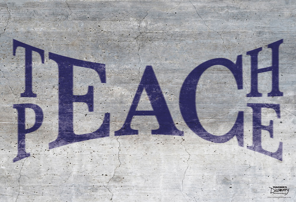 Is give peace a chance. A gentle reminder to students in your classroom focuses on their social and emotional learning abilities. How can they become teachers of peace?Copyright 2019. Middle school, high school. 19 x 13 inches. Cardstock.