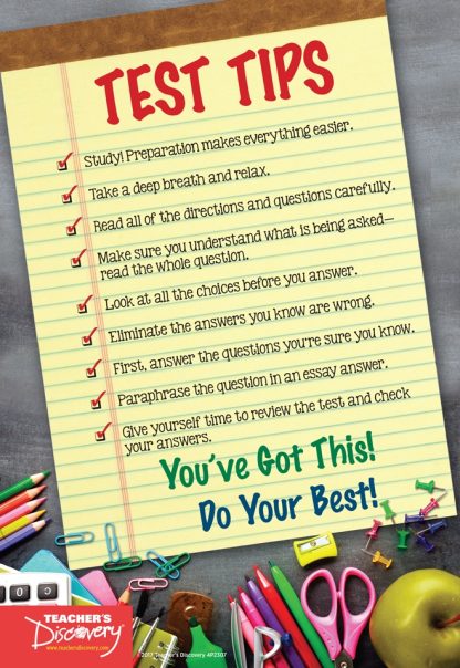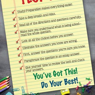 Slow down. “Take a deep breath.” “Read carefully.” Remind your students they’ve got/em the test aced with helpful tips they can see and remember.Copyright 2017. 13 x 19 inches. Cardstock.