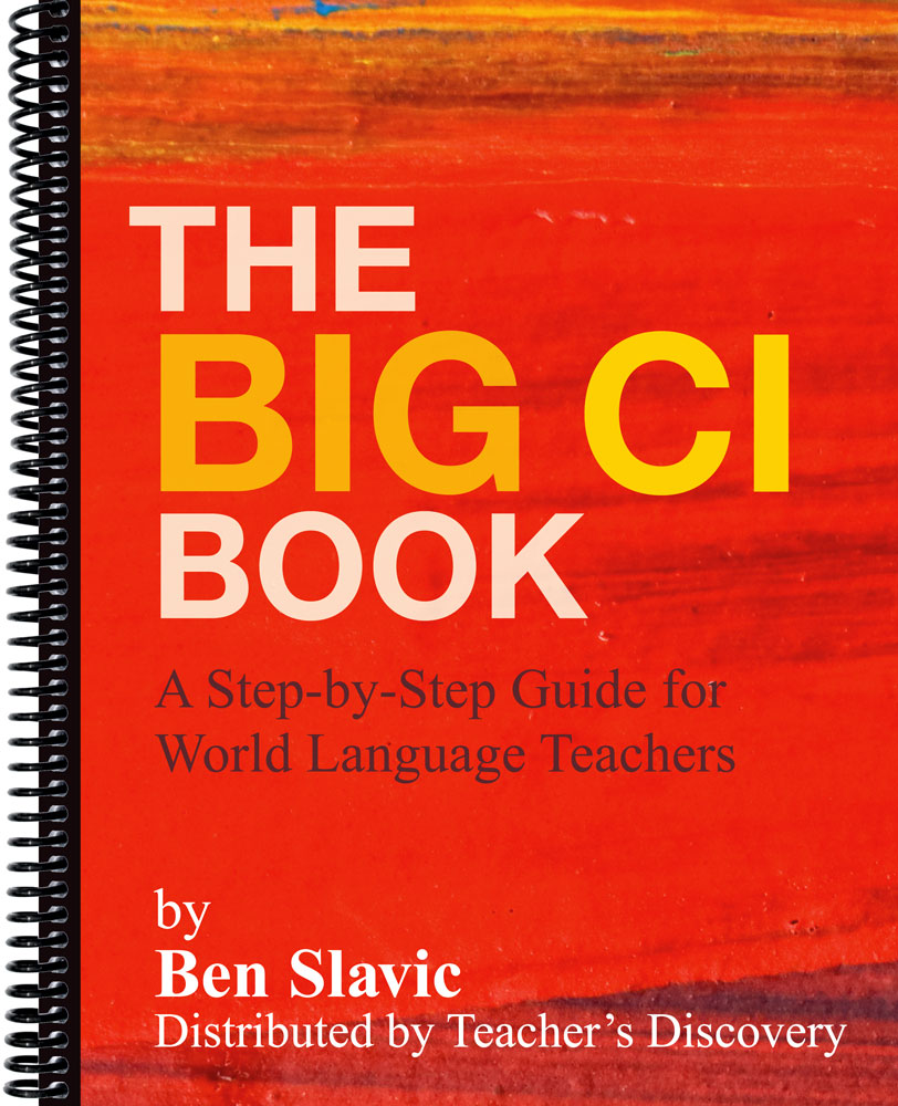 Ben Slavic shows you step by step how to implement CI practices in your classroom, right away. Educators say they saw a 75dash;80% increase in engagement, found it easy and enjoyable to immediately implement CI practices, and that the book has made teaching meaningful for them again. See the reviews section for more, or read Jenny’s experience below:”After 10 years of trying to implement CI/TPRS methods into my teaching, I changed school districts and was told that I had to use traditional methods to teach. I hated going to work the entire year. So I changed districts yet again and was told that I had the freedom to use any methods that I wanted. But I felt like I had forgotten all of my CI/TPRS training. I couldn’t afford to attend a summer conference and I desperately needed something that would help me relearn and start out strong for my new students. So when I found The BIG CI Book, I felt relief and gratitude immediately. I bought it with my own money. And when it arrived, I poured through it in two days devouring every detail. It has become my main guide book now. I’m so grateful that Ben Slavic took the time to actually write all of these tools down. I feel confident that I am a more effective teacher when using these methods. Thank you for this resource. Teaching is rewarding again.” The Big CI Book Contains:br /br /Fourteen Skills/ that form the foundation of TPRS/CI, including how to circle, the speed at which to move, how to clarify, and how to read students and know if the input is really getting in.br /br /Twenty-Seven Strategies/ to keep your channels of delivery varied and satisfy students;#39; cravings for novelty.br /br /Eight Classroom Management Tools/ for establishing the environment TPRS/CI must have in order to work–teach kids how to participate, nip resistance in the bud, and make your classroom a community where everyone truly feels safe and valued.br /br /Three Assessment Tools/ that keep kids accountable and produce fair grades with minimal time invested.br /br /Four Bailout Moves/ that you can “jump” to any time an activity goes off the rails… sometimes it even happens to the experts!br /br /Appendix of Resources/ for the TPRS/CI teacher to help explain or defend the approach to administrators/parents/colleagues, to define what “rigor” really means, and more.Note: All techniques/resources are intended for any world language teacher and are not specific to a particular language. The language used in examples varies but is most often French or Spanish. Examples provided are easily understood without fluency in French or Spanish.br /br /Copyright 2015. English. 305 pages.Book Download: PDF.Adobe Reader required to view PDF.Print Book: Spiral-bound. 8.5 x 11 inches.img alt=”” src=”//aedownload.net/teachersdiscovery/images/Author_Ben_Slavic.jpg” style=”float: left; border-width: 0px; border-style: solid; margin: 0px 6px; height: 125px; padding-right: 10px;” /About the AuthorBen Slavic/ is a nationally recognized TPRS expert. His simple message is that people learn languages with joy first and analysis second, and not the other way around.