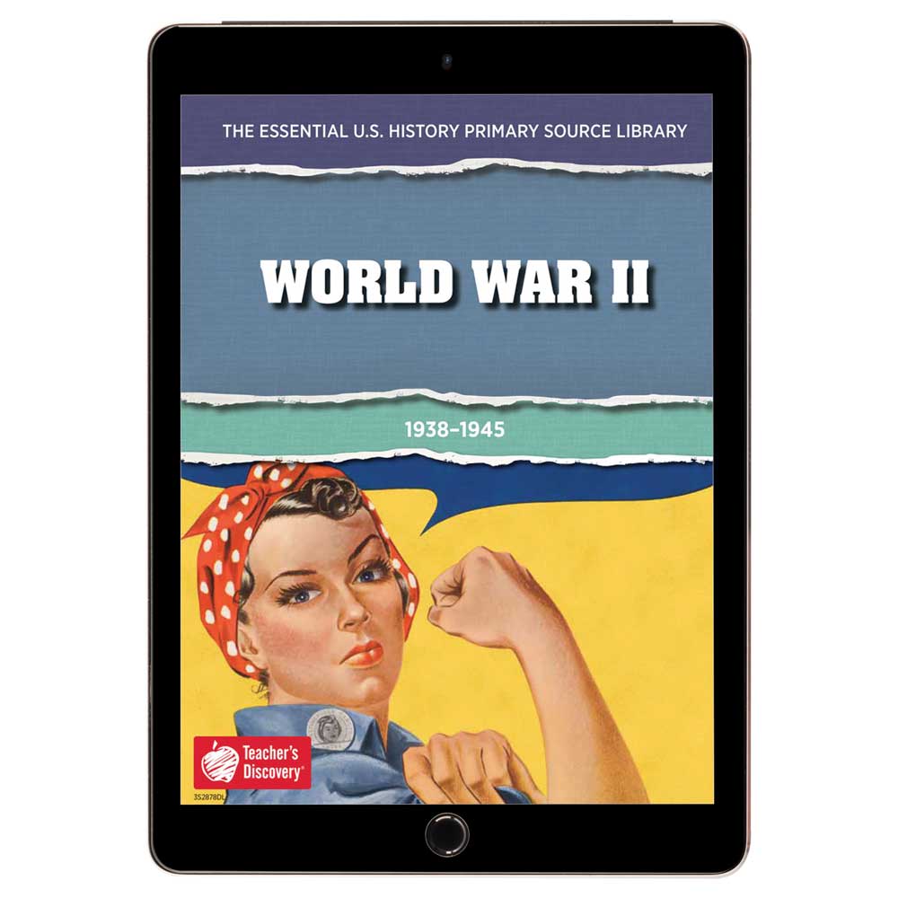 This fully projectable download contains 25 digitized primary sources from World War II, plus an explanation of primary and secondary sources, and 10 reproducible mnemonic device graphic organizers to support your lesson. The World War II download features documents like: FDR’s Day of Infamy speech We Can Do It! poster Images from the front lines And more!Copyright 2020. Middle school, high school. Reproducible. PDF, 41 pages.Suggested Activitiesp style=”margin-left: 40px;”>eed some ideas? Use the primary sources in this download to introduce a topic, practice DBQs, contextualize current events, or reach students with creative activities where they write or draw their own versions of the documents!
