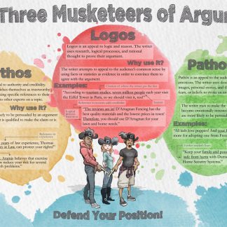 Introduce your students to the basics of analyzing and writing Aristotelian appeals with this classroom poster. These eye-catching modern musketeers will teach your students the art of crafting convincing arguments!Poster includes: Definitions Explanations a name=”_GoBack”/afor why each appeal is used Annotated examplesCopyright 2017. 19 x 27 inches. Laminated to last.