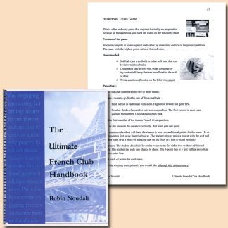 This book is loaded with ready-made activities to make your French Club the most interesting and engaging club on campus! Many of us have three or four preps, leaving little time to plan fun learning activities for French Club. This handbook does all the work for you so you can have stress-free club meetings that your students will brag about to their friends. Included are complete games that require no preparation, cultural themes and activities, National French Week activities, holiday activities, crafts, songs, recipes, and much more. Many of the games and activities in this book can also be used in the classroom, so you will always have an engaging activity ready to use during unexpected downtime.Copyright 2015. English. French. All levels. Elementary, middle school, high school. PDF download, 129 pages.