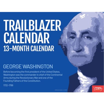 ;ldquo;The trailblazers in human, academic, scientific and religious freedom have always been nonconformists.;rdquo; –Martin Luther King, Jr. This calendar allows you to write in the months, so you can start using it at any time of any year. Prominently features 14 of the most well-known American pioneers Use this calendar to start a discussion, a unit, or a project on the time period in your classesFeatured trailblazers: George Washington Sacagawea Frederick Douglass Abraham Lincoln Sitting Bull Elizabeth Cady Stanton Harriet Tubman Nellie Bly Franklin Delano Roosevelt Martin Luther King, Jr. Jeannette Rankin Cesar Chavez Sandra Day O’Connor Shirley ChisholmCopyright 2018. Saddle-stitched paper. 8 x 11 inches, 28 pages.