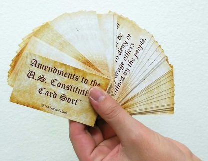 This card sort game helps students learn the 27 amendments to the U.S. Constitution! Each amendment and its explanation are on a separate card. This is a great go-to review game. Students shuffle the cards, deal them out, and match away until they are amendment pros! One to four players. Contains 54 amendment cards, instructions, and answer key. Copyright 2015