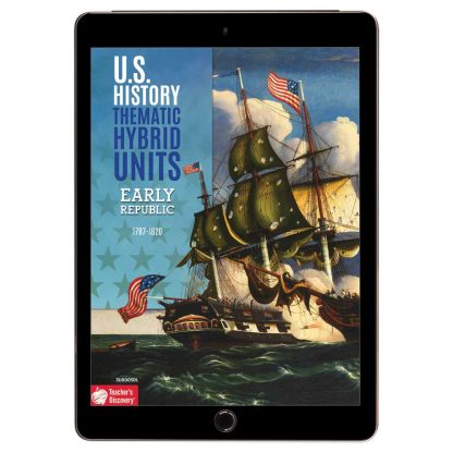 This versatile digital resource is an entire thematic unit in one place! PDFs include complete teacher edition and editable student pages. Students simply type their answers in, save, and upload! Printable and projectable, this unit is perfect for seamless teaching in class, at home, or any combination! Flexible design works in any learning environment, ready to upload to Google Classroom or any other learning platform! Differentiated and supportive, with a solid mix of warmups, out-of-the-box activities, content and skills practice, graphic organizers, primary source analysis, and resources. Activities include: Prove It! Persuasion Station: Does Sacajawea Deserve Her Fame?, Document-Based Questions: Jefferson Buys 530 Million Acres, and Document-Based Questions: Growing Pains. Ready to implement! No textbook, no problem. A historical context reading with bolded key vocab terms starts the unit. Aligned to C3 and Common Core national standards.Middle school, high school. Reproducible. PDF download, 74 pages.