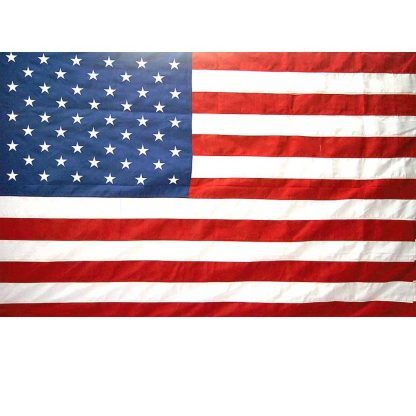 Nylon fabric flag is 18 x 12 inches and is mounted on a wooden flagpole.