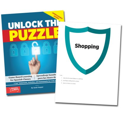 This downloadable excerpt is a great way to reinforce potential Spanish 1 topics: dialogue for a store environment and clothing description. Note: this resource should be used after the topic has been taught.Includes: ACTFL Can-Do statements related to the standards Specific ACTFL standards addressed in this downloadable excerpt Explanation of Game-Based Learning Lists of ways to positively reinforce game-based activities Instructions on how to get started and how to play Three challenges based on each respective topic, written entirely in English but encouraging Spanish output Spanish-language versions of the challenges for each topic, encouraging Spanish output while reinforcing Spanish reading Three clues and a puzzle to solve for the topic Challenges unlock a clue to solve a puzzle. At the end of each topic are reproducible strips (and answer key) for the teacher to award groups with a clue upon finishing a task Culturally-related extension activity, written in English and in Spanish versions Team skills worksheet to assess how groups can learn from their shared experience and improve next time Group checkup sheet to evaluate their peers’ performanceCopyright 2018. Spanish, English. Level 1. Middle school, high school. Download/, PDF. Adobe Reader required to view PDF. 24 pages.SAVE/ money by purchasing the complete book with all the topics, available in print or download format, Unlock the Puzzle (1B5930), by Sarah Hopper, which includes this content and many other topics.img alt=”” src=”//aedownload.net/teachersdiscovery/images/Author_Sarah_Hopper.jpg” style=”float: left; border-width: 0px; border-style: solid; margin: 0px 6px; height: 140px; padding-right: 10px;” /About the Author Sarah Hopper/ earned her bachelor’s degree in French Education. She holds a master’s degree in Second Language Education. She also holds certifications to teach French and Spanish in New York State, has studied abroad in France and Mexico, and has taught French and Spanish for 15 years at all levels. Her teaching has included distance learning courses, as well as traditional classes. She was nationally recognized as a 2014 PBS Digital Innovator. She loves learning new strategies and tools, and is currently pursuing certification to teach English as a Second Language. She resides with her three children and husband in northern New York.