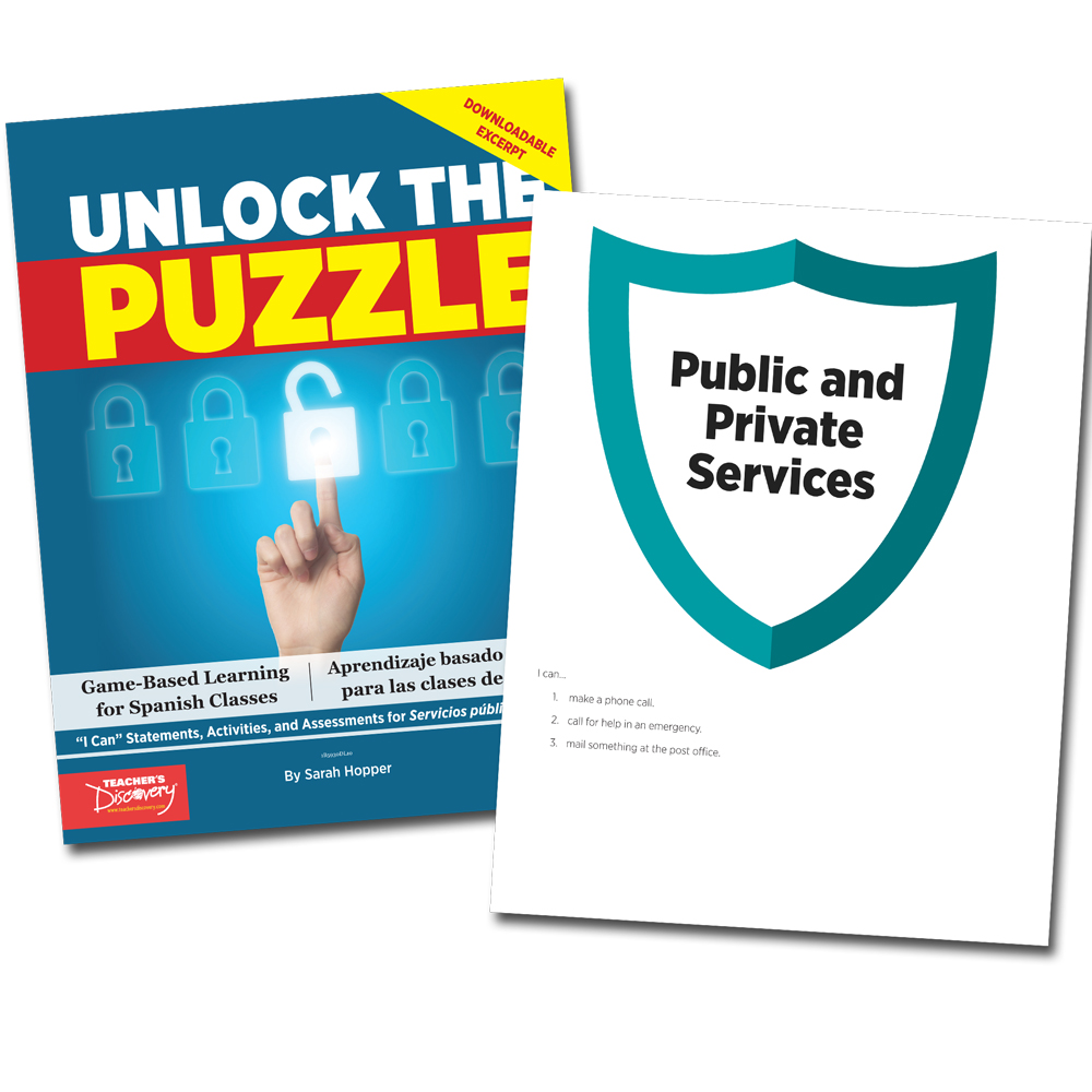 This downloadable excerpt is a great way to reinforce potential Spanish 1 topics: making different types of phone calls and mailing letters. Note: this resource should be used after the topic has been taught.Includes: ACTFL Can-Do statements related to the standards Specific ACTFL standards addressed in this downloadable excerpt Explanation of Game-Based Learning Lists of ways to positively reinforce game-based activities Instructions on how to get started and how to play Three challenges based on each respective topic, written entirely in English but encouraging Spanish output Spanish-language versions of the challenges for each topic, encouraging Spanish output while reinforcing Spanish reading Three clues and a puzzle to solve for the topic Challenges unlock a clue to solve a puzzle. At the end of each topic are reproducible strips (and answer key) for the teacher to award groups with a clue upon finishing a task Culturally-related extension activity, written in English and in Spanish versions Team skills worksheet to assess how groups can learn from their shared experience and improve next time Group checkup sheet to evaluate their peers’ performanceCopyright 2018. Spanish, English. Level 1. Middle school, high school. Download/, PDF. Adobe Reader required to view PDF. 24 pages.SAVE/ money by purchasing the complete book with all the topics, available in print or download format, Unlock the Puzzle (1B5930), by Sarah Hopper, which includes this content and many other topics.img alt=”” src=”//aedownload.net/teachersdiscovery/images/Author_Sarah_Hopper.jpg” style=”float: left; border-width: 0px; border-style: solid; margin: 0px 6px; height: 140px; padding-right: 10px;” /About the Author Sarah Hopper/ earned her bachelor’s degree in French Education. She holds a master’s degree in Second Language Education. She also holds certifications to teach French and Spanish in New York State, has studied abroad in France and Mexico, and has taught French and Spanish for 15 years at all levels. Her teaching has included distance learning courses, as well as traditional classes. She was nationally recognized as a 2014 PBS Digital Innovator. She loves learning new strategies and tools, and is currently pursuing certification to teach English as a Second Language. She resides with her three children and husband in northern New York.