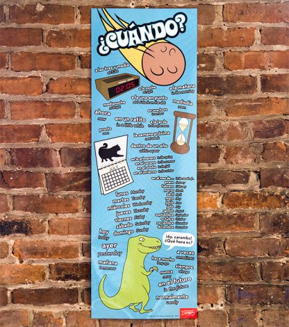 Put this poster up in your classroom to supply your students with tons of ways to answer the question, “When?” in Spanish. 13 x 38 inches. Laminated to last forever.