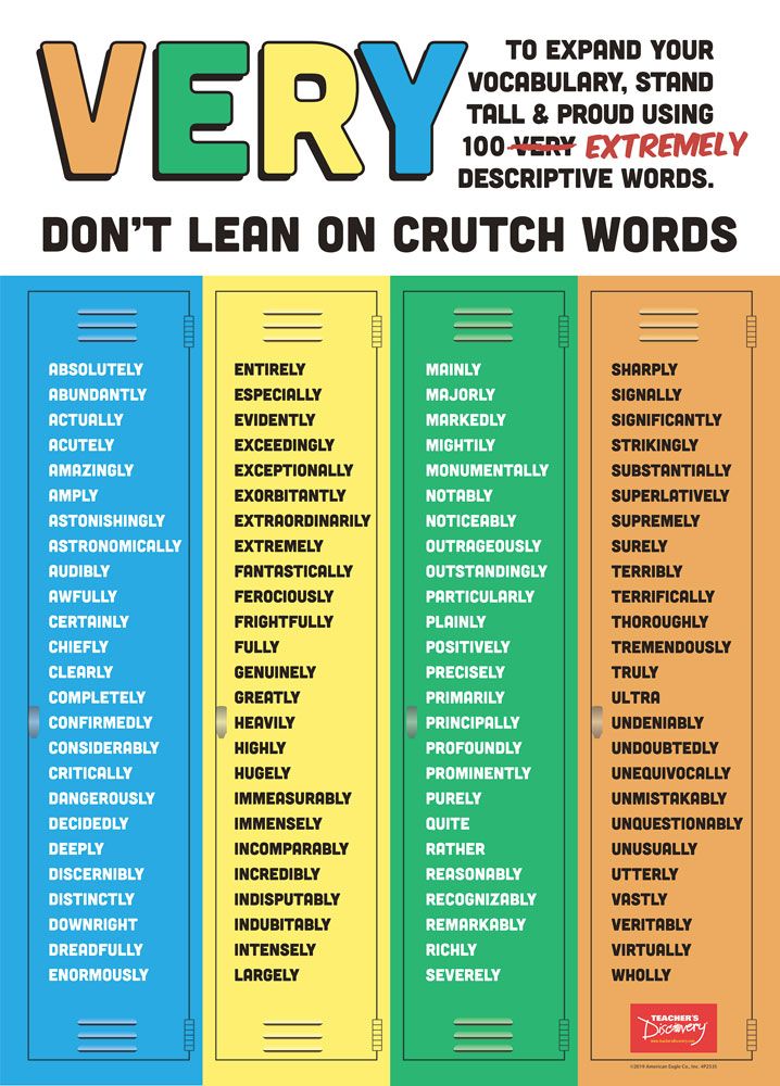 ;ldquo;Very;rdquo; is one of the most overused adverbs. Our list of 100 synonyms helps you easily replace this filler word.Copyright 2019. Middle school, high school. 19 x 27 inches. Laminated.