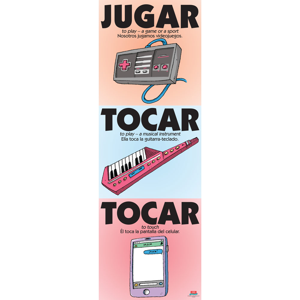 Vexing Verbs Jugar and Tocar Spanish Poster