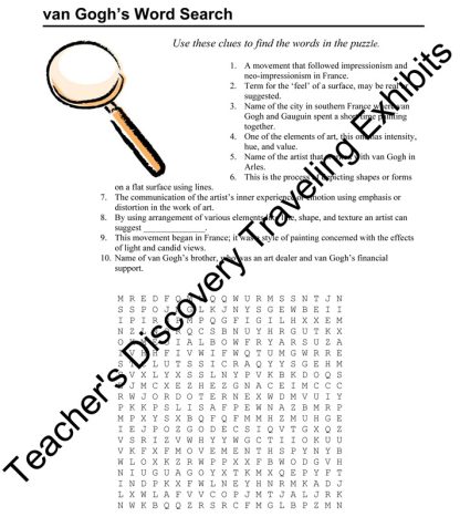 Make the most of your Vincent Van Gogh exhibit with these ready to use cross-curricular activities. This activity pack features an assortment of reproducible activities from critical thinking exercises to puzzles. Inspired by great artists, created by teachers and ready for your classroom. Copyright 2008. English. Middle School and High School levels. Reproducible. 8 x 11 inches. 20 pages.