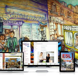 Voces ESL offers opportunities for differentiation throughout each chapter, providing your English Language Learners with a solid foundation to be successful and to feel comfortable in their new environment. Level 1 begins the journey with basic novice content, including survival English, greetings, numbers, the alphabet, and basic conversation comprehension.Voces ESL Level 1 ;ldquo;Our Words;rdquo; offers: Comprehensible stories Project-based assessments In-class prompts Auto-graded activities Recording activities Engaging videos Authentic materials Vocabulary and conversations with audio And moreAll in a fully customizable online platform that students can access from any device!Copyright 2018 Voces Digital. English. Novice, Beginning. Middle school, high school. Comprehensible input. Web-based curriculum, no download, no installation.