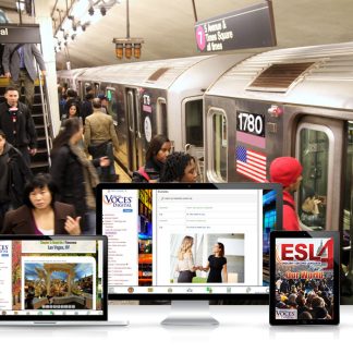 Voces ESL offers opportunities for differentiation throughout each chapter, providing your English Language Learners with a solid foundation to be successful and to feel comfortable in their new environment. Level 4 is an intermediate-level curriculum for advanced students, containing longer and more complex comprehension stories, deeper conversation models, more cultural resources, and plenty of practice through reading, writing, and speaking activities.Voces ESL Level 4 ;ldquo;Our World;rdquo; offers: Comprehensible stories Project-based assessments In-class prompts Auto-graded activities Recording activities Engaging videos Authentic materials Vocabulary and conversations with audio And moreAll in a fully customizable online platform that students can access from any device!Copyright 2018 Voces Digital. English. Intermediate, Advanced. Middle school, high school. Comprehensible input. Web-based curriculum, no download, no installation.