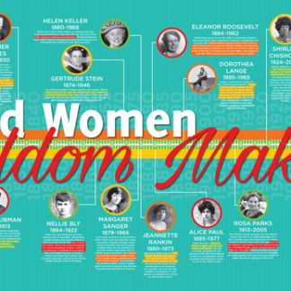 Use this timeline to provide your students with a list of women across generations of U.S. History who weren’t afraid to ruffle some feathers! From women’s rights activists and government officials to artists, humanitarians, and scientists, each woman left a unique fingerprint on the world. Copyright 2016. 38 x 13 inches. Laminated to last.