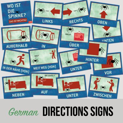 Some say no matter where you are, you’re never more than three feet from a spider! Talk about direction words using a situation that shows how important they are. German. Seventeen pieces, 13 x 10 inches each. Cardstock.