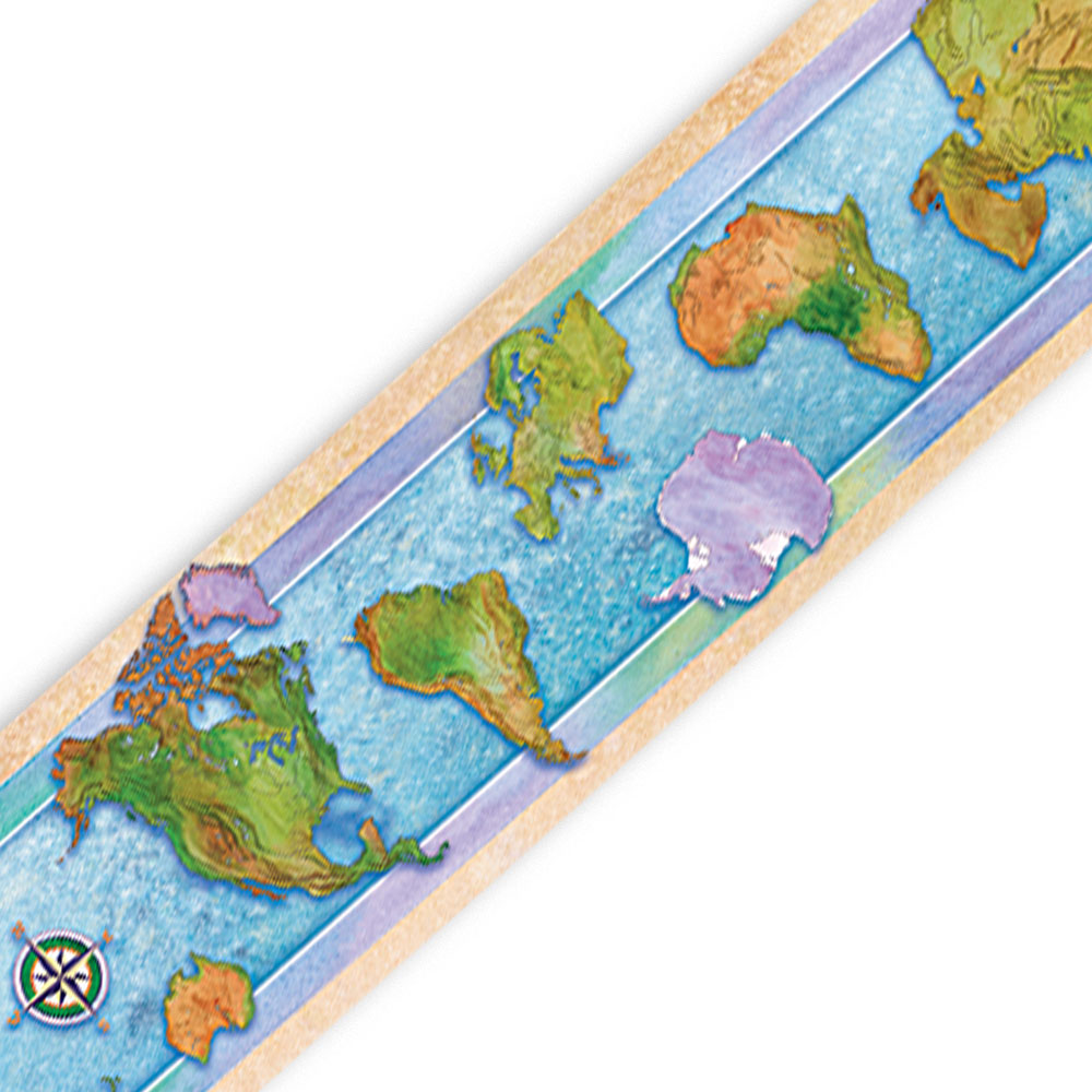 Decorate your classroom with colorful border trim showing the world continents.12 strips. 35 feet x 3 inches. Cardstock.