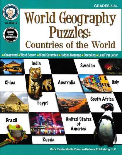 Explore the countries of the world with games! This book introduces 20 different countries, and follows them up with a variety of games for students of varying abilities: Crosswords Word searches Word scrambles Hidden messages Decoding Last letter/first letterCopyright 2018. Elementary, middle school. Reproducible. 8.5 x 11 inches. Softcover, 46 pages. Answer keys included.