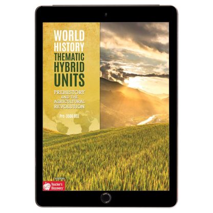 This versatile digital resource is an entire thematic unit in one place! PDFs include complete teacher edition and editable student pages. Students simply type their answers in, save, and upload! Printable and projectable, this unit is perfect for seamless teaching in class, at home, or any combination! Flexible design works in any learning environment, ready to upload to Google Classroom or any other learning platform! Differentiated and supportive, with a solid mix of warmups, out-of-the-box activities, content and skills practice, graphic organizers, primary source analysis, and resources. Activities include: Lascaux Caves Mural Project and Document-Based Questions: Transitioning from Hunter-Gatherer Societies to Classic Civilization. Ready to implement! No textbook, no problem. A historical context reading with bolded key vocab terms starts the unit. Aligned to C3 and Common Core national standards.Middle school, high school. Reproducible. PDF download, 39 pages.