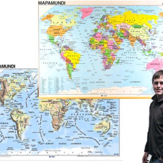 This colorful two-sided wall maps feature physical characteristics on one side and political information on the other. Physical side shows mountain ranges, lakes, rivers and other geographical features. Political side shows capitals and principal cities and towns. It’s travel-friendly form is easily rolled and taken from room to room, with grommets for easy hanging. Map measures 39 x 55 inches and is made of durable, flexible, wipeable, lightweight vinyl. Spanish. All levels.