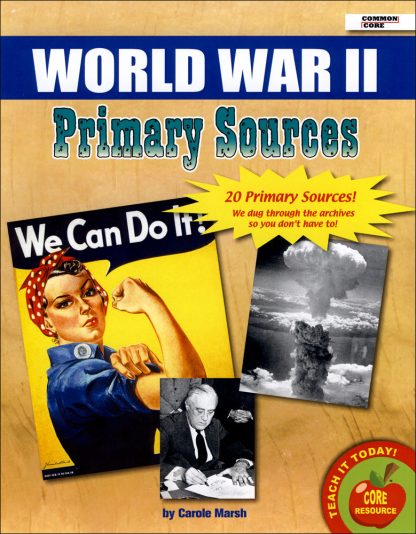 Pack of 20 primary source documents image cards relevant to the history of World War II. Includes historical documents, maps, photographs, political cartoons, lithographs, diagrams, and letters in a mix of color, black-and-white, and sepia finishes.span style=”color:#FF0000;”Download the Gallopade Free Online Teacher;#39;s Guide for Primary Sources PDF located in “Additional Info.”/spanAll levels. 8 x 11 inches each. Cardstock.