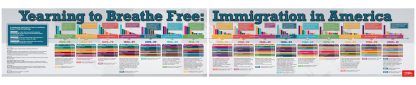 Two timeline posters help you tackle the hot topic of immigration. Color-coded bar graphs and a numeric display allow students to approach the data in different ways. Significant events are included and help provide context for population movement from pre-Revolutionary times to today. Stimulate discussions of events, trends, personal immigration history, and more with your students.Copyright 2018. Middle school, high school. Two posters. 38 x 13 inches each. Laminated.